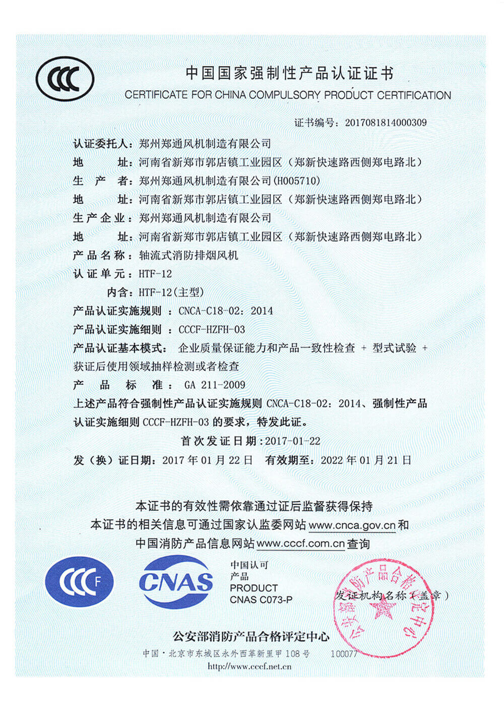 鄭通風(fēng)機(jī)主要產(chǎn)品包括:高壓風(fēng)機(jī)、不銹鋼風(fēng)機(jī)、消防排煙風(fēng)機(jī)、防腐防爆風(fēng)機(jī)、廚房排油煙風(fēng)機(jī)、玻璃鋼風(fēng)機(jī)、鍋爐引風(fēng)機(jī)、軸流風(fēng)機(jī)、柜式離心風(fēng)機(jī)、鍋爐引風(fēng)機(jī),產(chǎn)品通過(guò)ISO9001、ISO14001、ISO45001國(guó)際標(biāo)準(zhǔn)化組織制定的質(zhì)量管理體系認(rèn)證,部分產(chǎn)品通過(guò)了3C認(rèn)證和國(guó)家防爆電器產(chǎn)品質(zhì)量監(jiān)督檢驗(yàn)中心認(rèn)證。